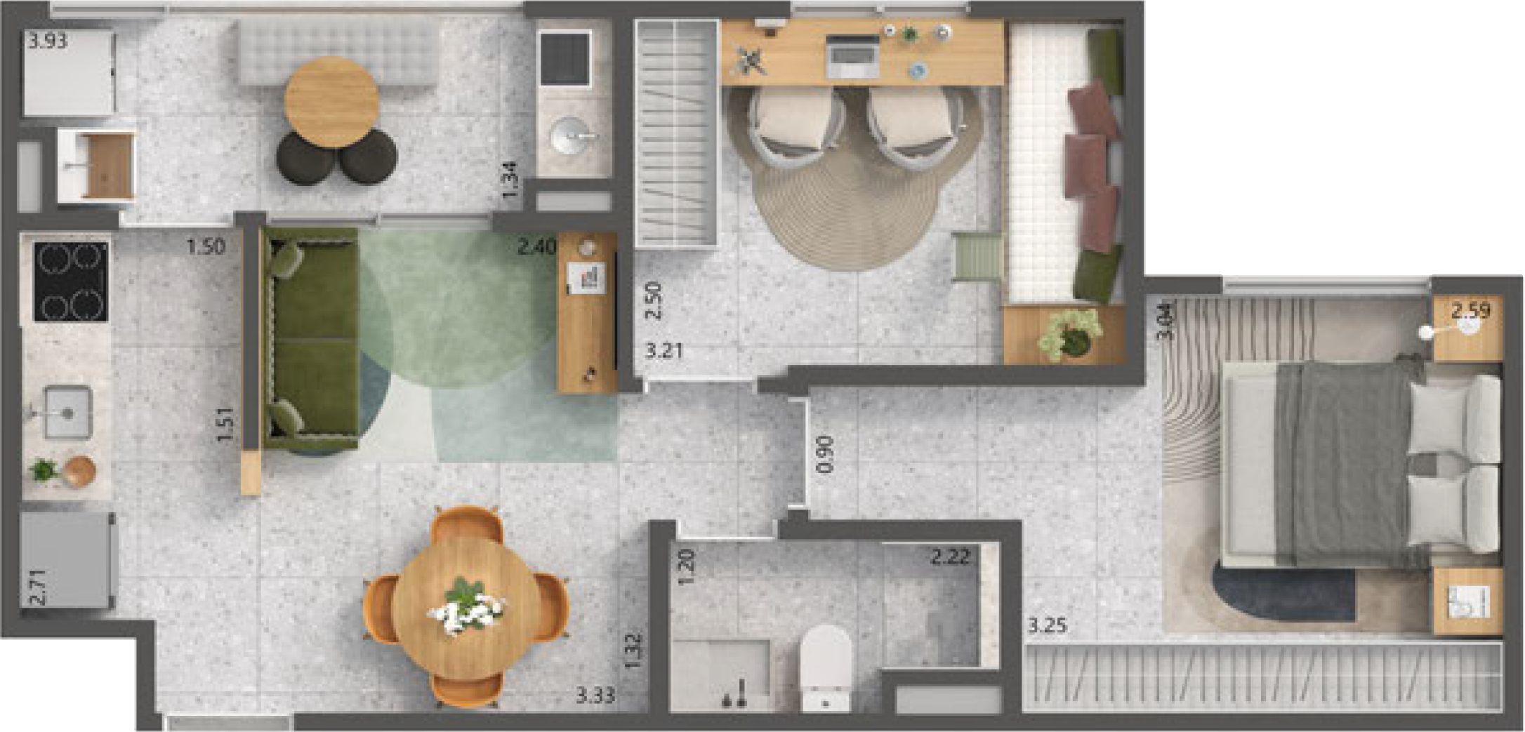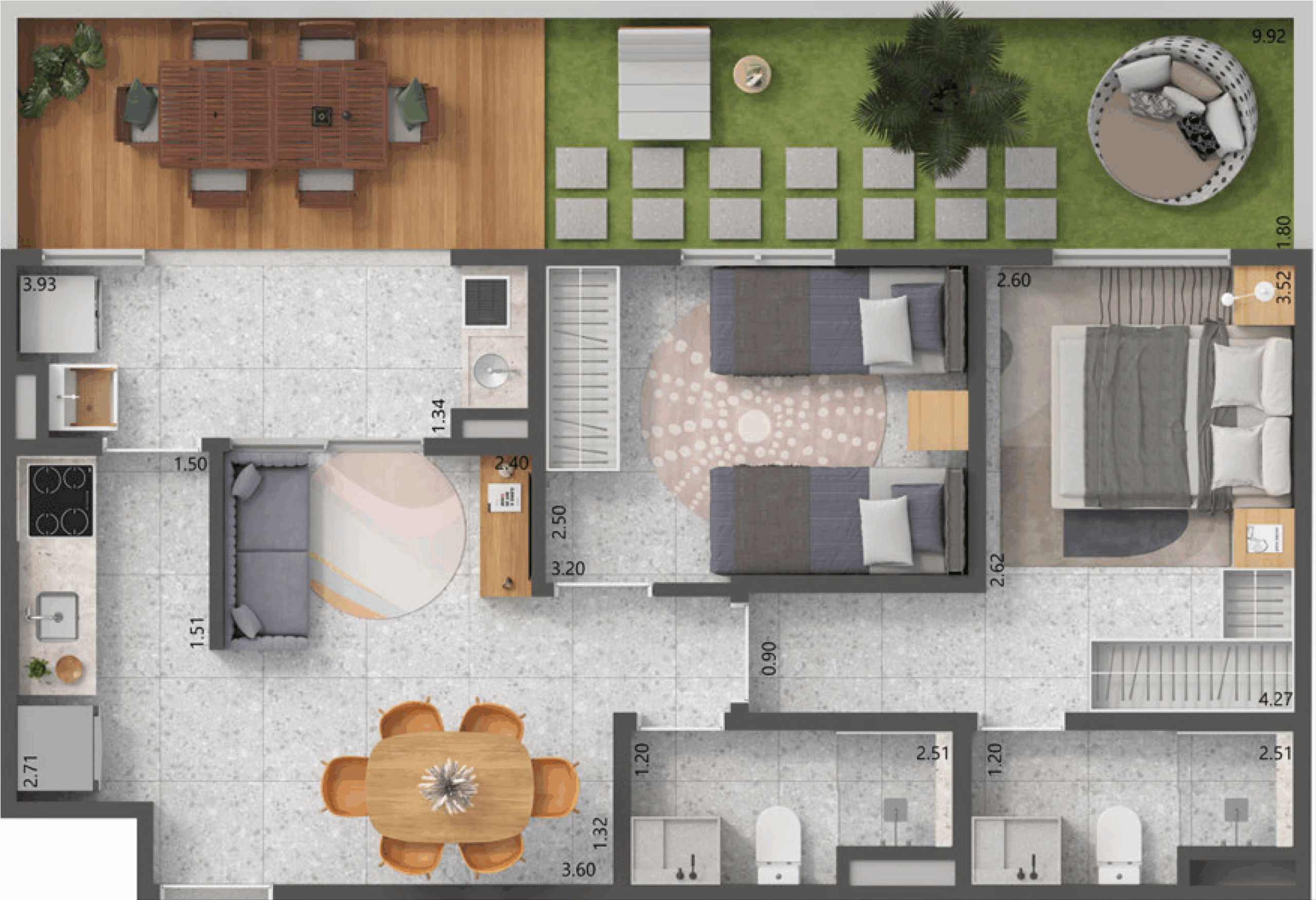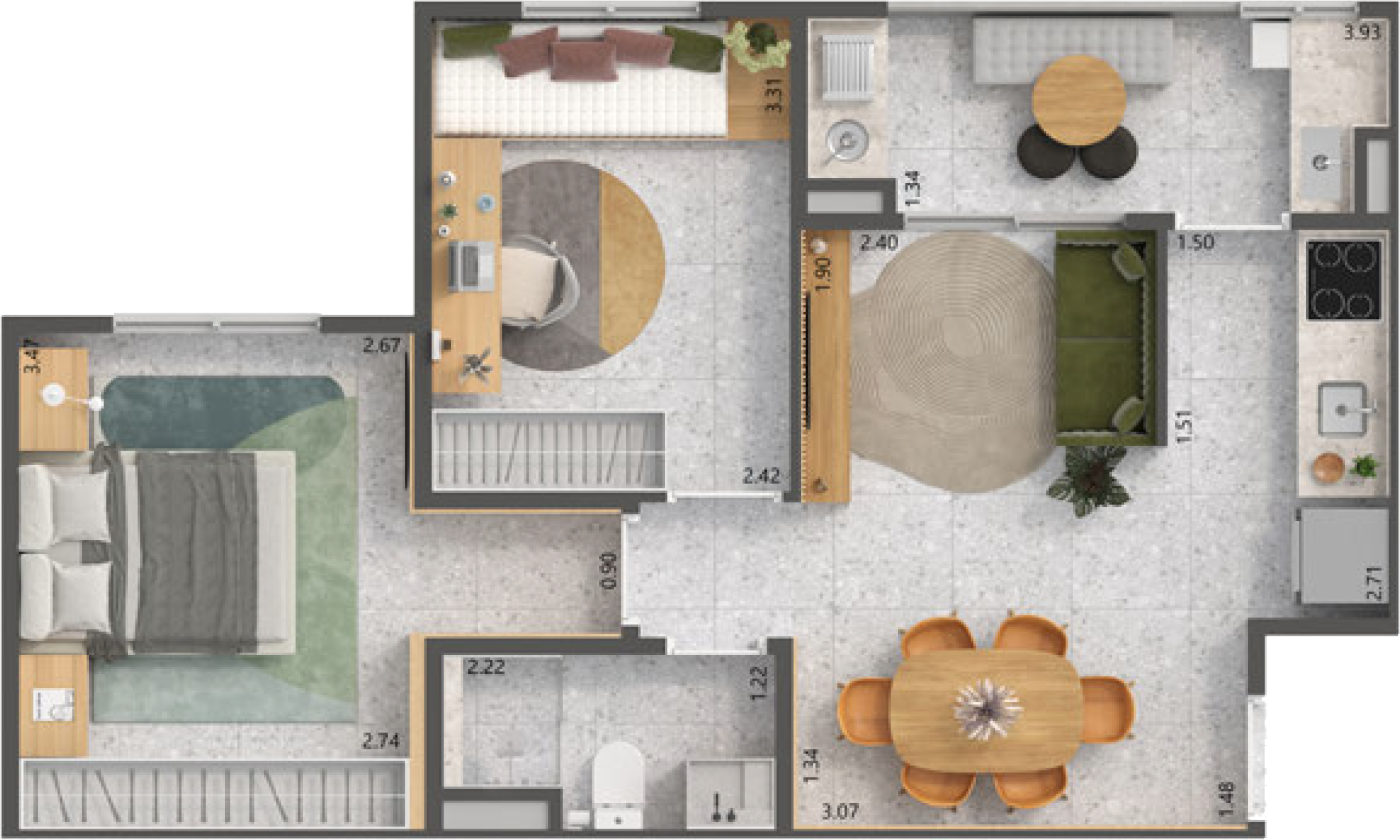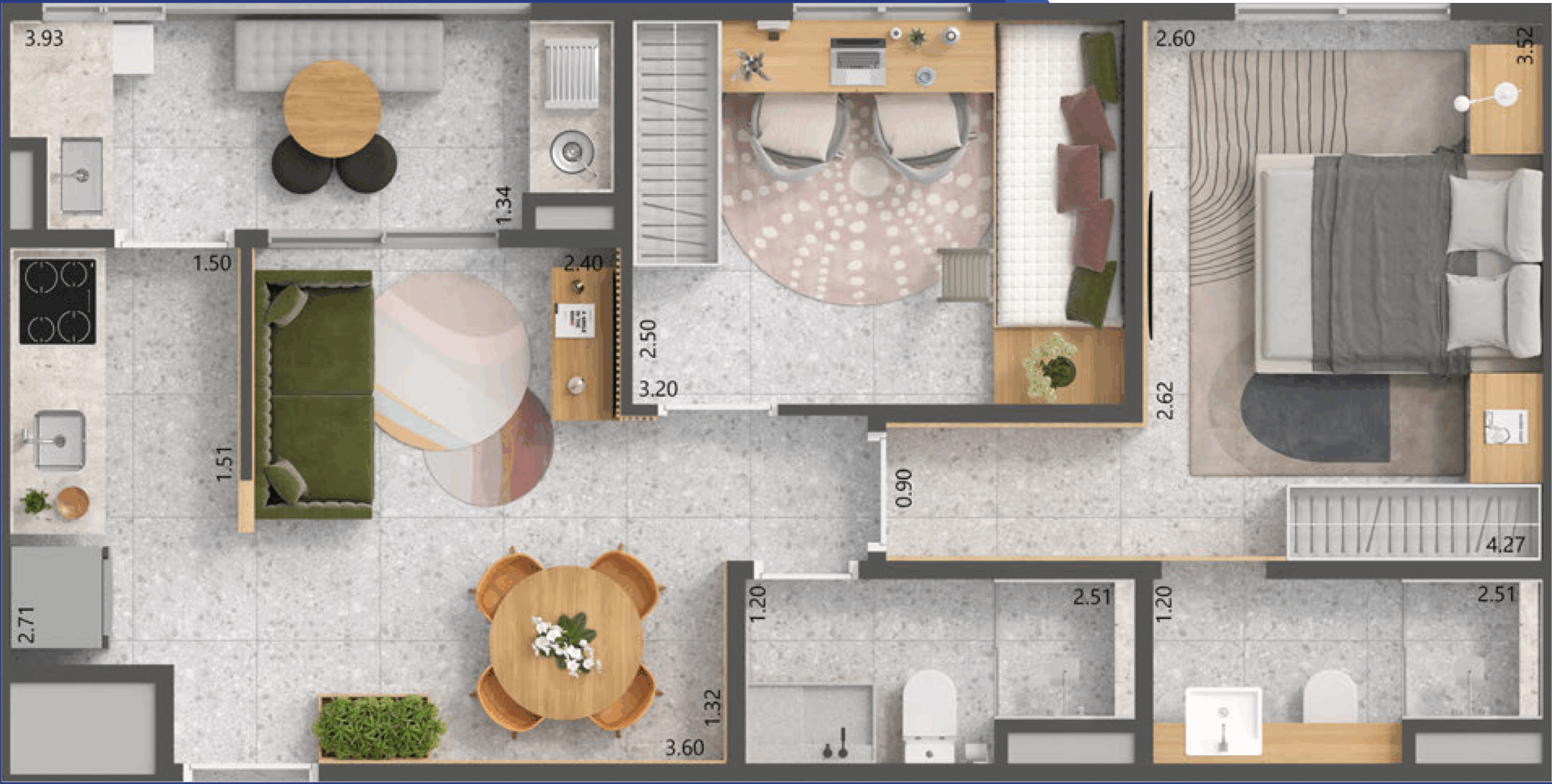 Os apartamentos foram pensados para atender diferentes estilos de vida, com plantas inteligentes que priorizam o aproveitamento dos espaços, a funcionalidade do dia a dia e o bem-estar da sua família.