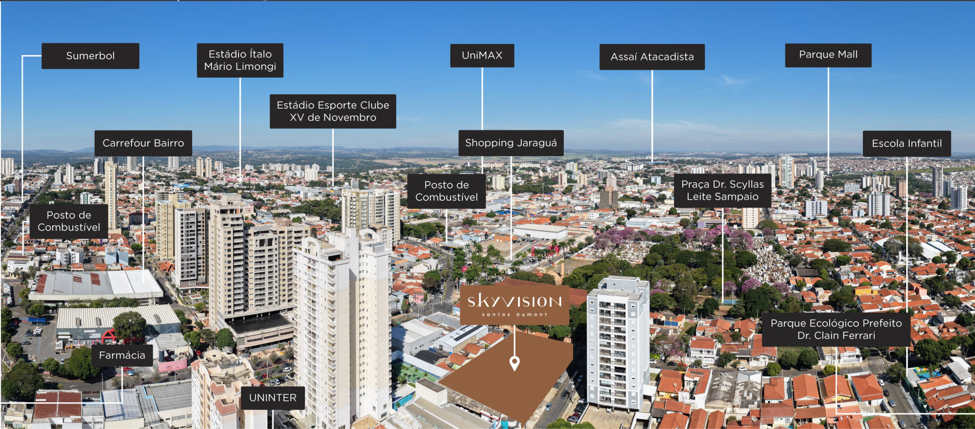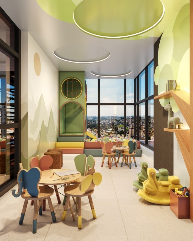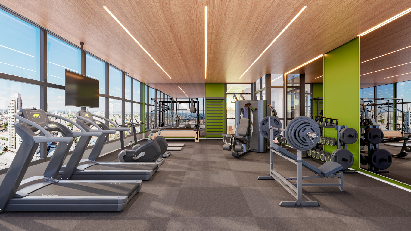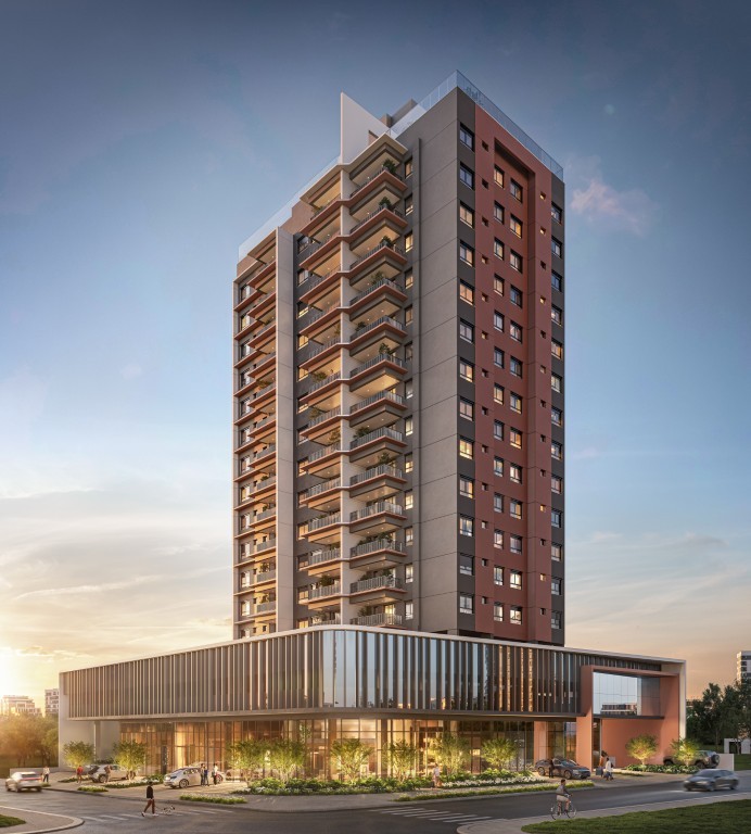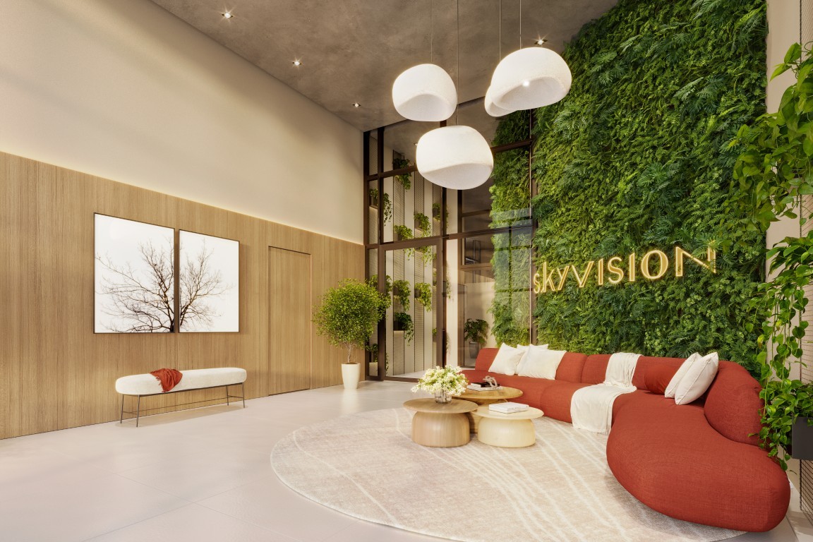 O SKYVISION chama a atenção por já trazer o conceito de fachada ativa com nove lojas comerciais na própria estrutura do prédio, gerando muito mais facilidade para seus moradores.